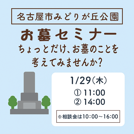 お墓セミナー“ちょっとだけ、お墓のことを考えてみませんか?”を開催します。