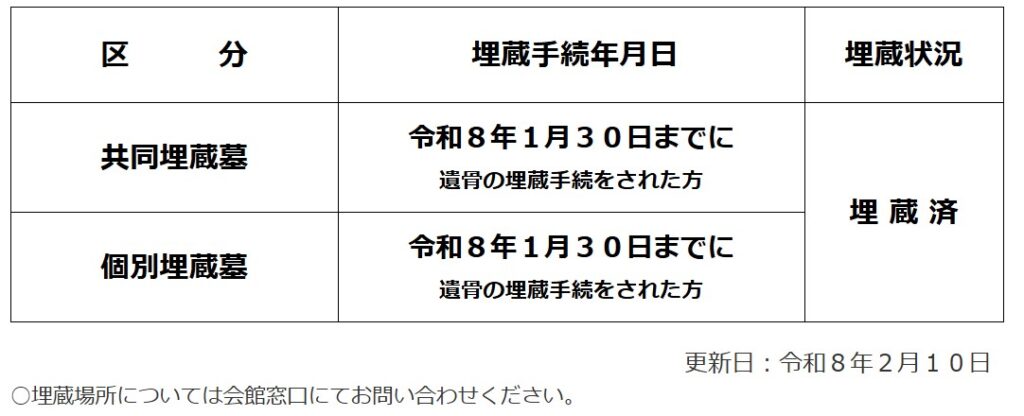 「合葬式墓地(共同埋蔵墓・個別埋蔵墓)」の埋蔵状況を更新しました。